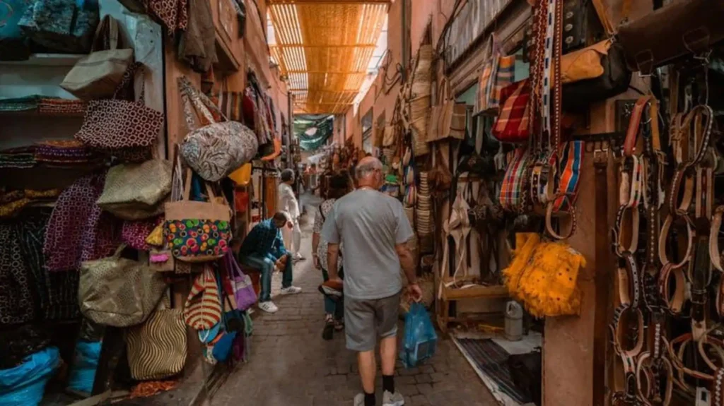 Medina Marrakech adalah labirin sempit yang dipenuhi dengan souk (pasar tradisional). Anda dapat menemukan berbagai produk lokal seperti kerajinan tangan, karpet Maroko, pakaian tradisional, dan perhiasan. Suasana di Medina penuh dengan energi dan menggambarkan kehidupan lokal Marrakech.
