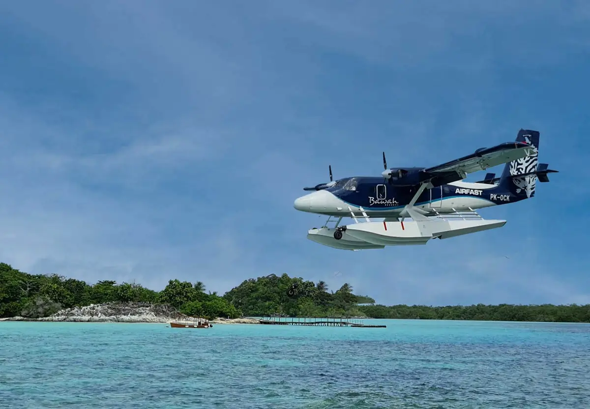 Saat pesawat mulai lepas dari permukaan laut, suara riuh mesin berpadu dengan percikan air yang terhempas ke samping sayap. Dalam beberapa detik, tubuh pesawat melayang, naik perlahan, meninggalkan buih putih di permukaan laut. Dari jendela kecil di sisi kabin, hamparan lautan biru toska membentang sejauh mata memandang, diselingi pulau-pulau kecil dengan garis pantai keemasan.